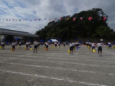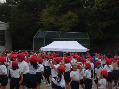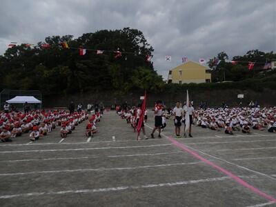 児童会が全校のみんなの意見をすいあげ作成したスローガンのとおり「一致団結!」「笑顔」がたっぷりと見られた素晴らしい運動会になりました。