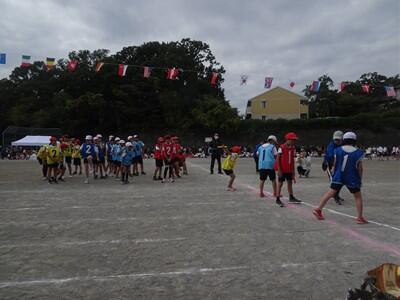 最後はリレー種目。バトンパスも練習した通りスムーズに!最後までよく走り切りました!