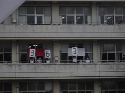 閉会式では得点発表も工夫を凝らし全校が1点に注目していました。
